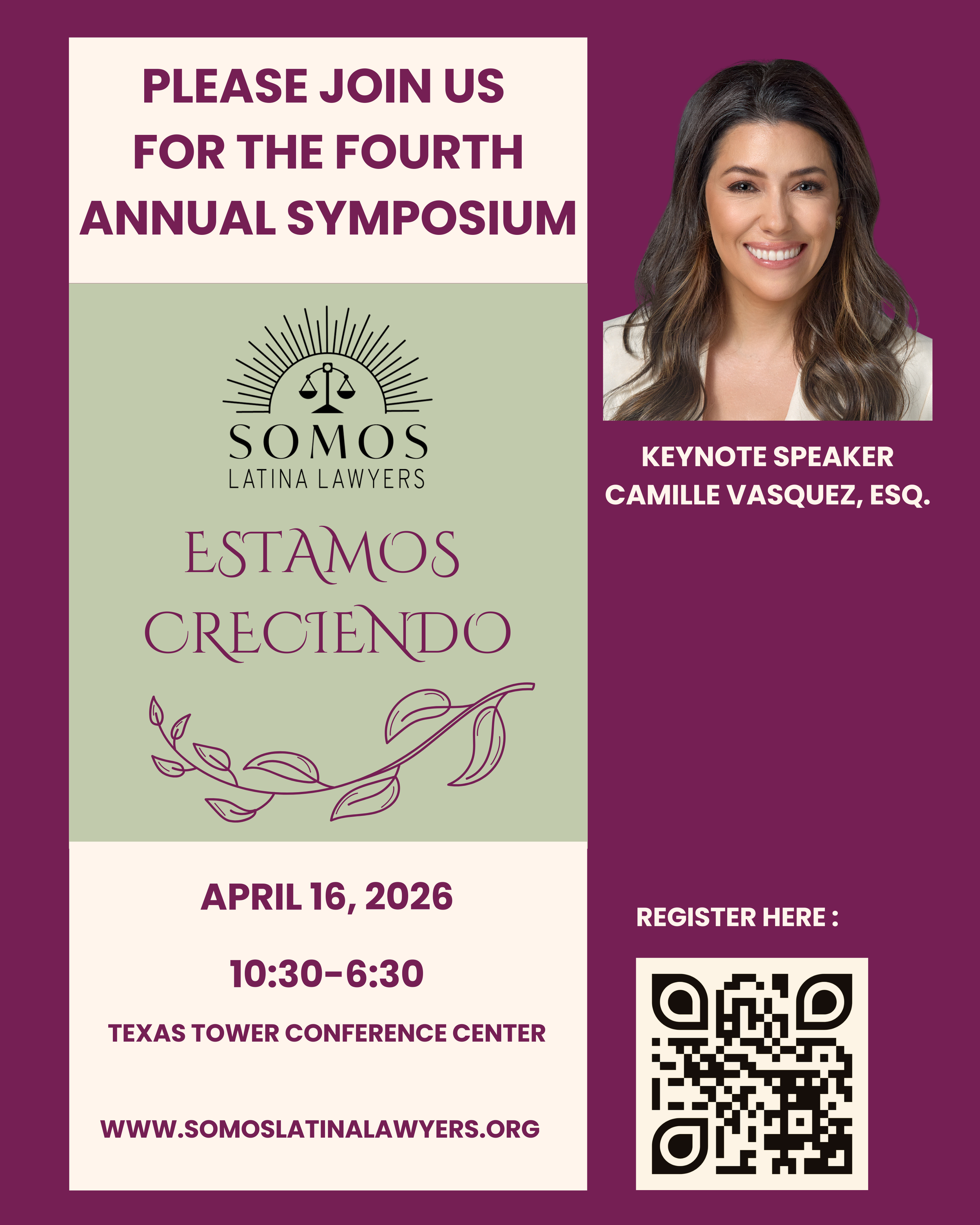 Somos Latina Lawyers is excited to announce that our upcoming 2026 Symposium - Estamos Creciendo will take place on Thursday, April 16, 2026 in Houston, Texas.